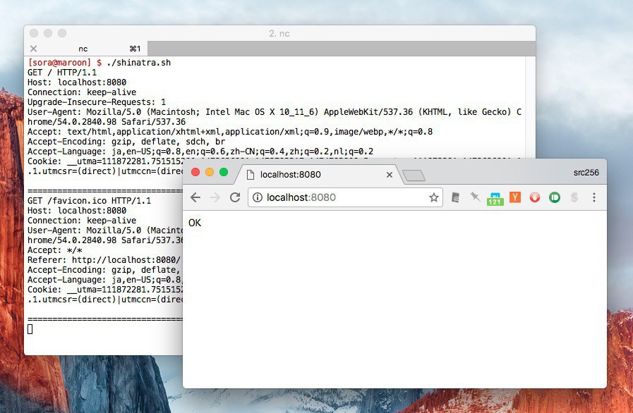 shinatraはncコマンドで作られたシンプルなWebサーバーです。