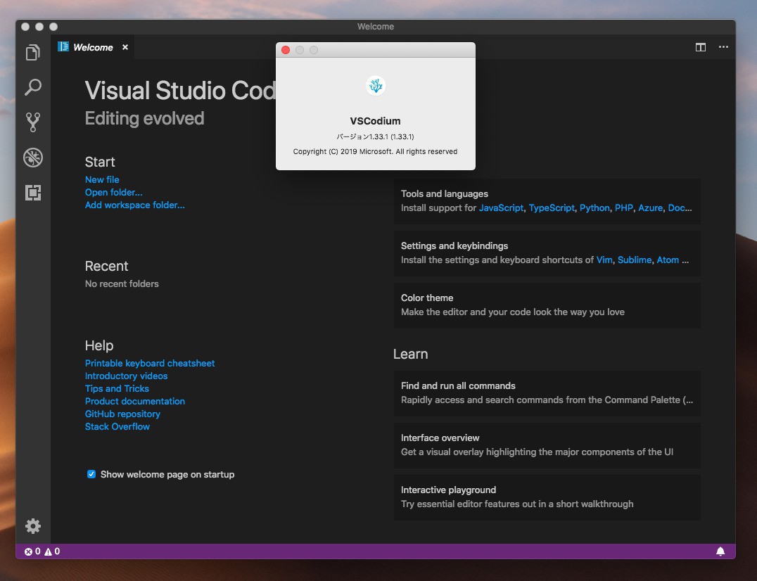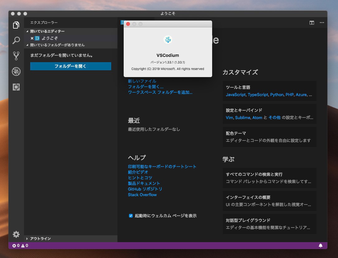 最初に説明したとおりVSCodiumの機能はロゴやテレメトリー無効以外は本家Visual Studio Codeと同じです。Microsoftのロゴや診断機能をできるだけ避けたいと思っている方は試してみると良いかもしれません。