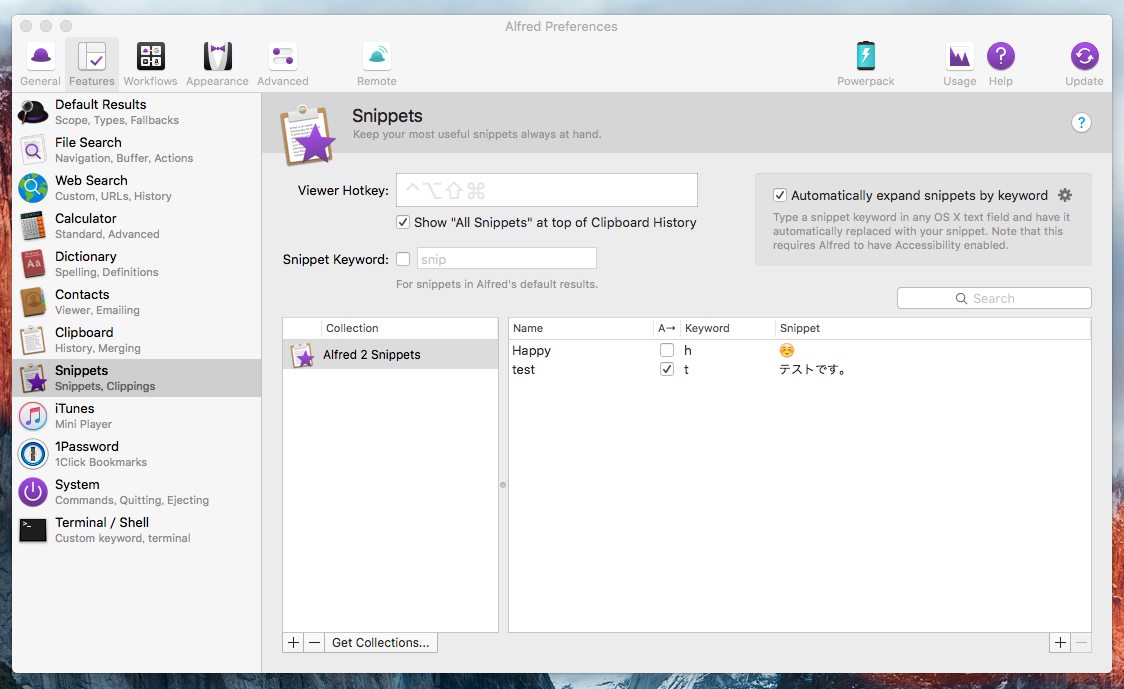Alfred 3はこれまでと同様基本無料で使用できますが、Powerpackと呼ばれる有償のライセンスを購入することで全ての機能が解放され、さらに便利な機能が利用可能となります。