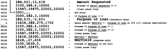 このようなプログラムがアメリカの銀行で1991年ごろ実際につかわれていたというところが恐ろしいですね。実際はツールによって生成される、内部的なコード形式らしいですがツールのデキが悪く手作業で内部形式をコーディングする羽目におちいっていたようです(ありがち)。