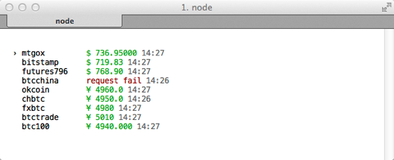 これでインストール完了。後は「btc」コマンドで立ち上げるだけです。「enter」でリフレッシュ、「g」でマーケットのWebページを表示することができます。