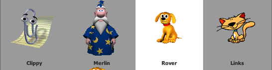 再現されたAgentは「Clippy」、「Merlin」、「Rover」、「Links」の4種類。