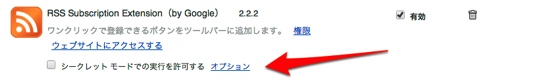 「RSS Subscription Extension(by Google)」を探して、「オプション」をクリック