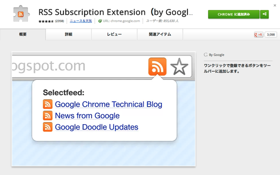 Webサイトによっては、RSSフィードを提供しているのにリンクがすごくわかりづらかったりすることもあるので、リンクを見つけてくれる「RSS Subscription Extension」はすごく便利な拡張機能だといえます。ただし、この拡張、Google製なので、RSSを見捨てようとしつつあるGoogleがちゃんとメンテしてくれるのかどうかちょっと気になります。