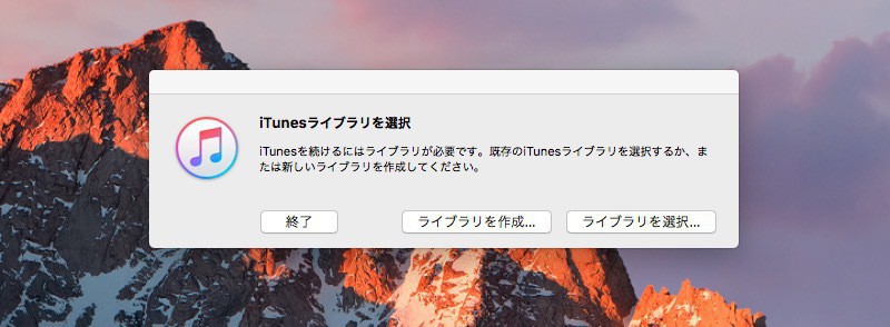▲Macの場合Optionキーを押しながら、Windowsの場合Altキーを押しながらiTunesを起動すると「iTunes Library.itl」を選択するためのダイアログが表示されます。右下の「ライブラリを選択」ボタンをクリックします。