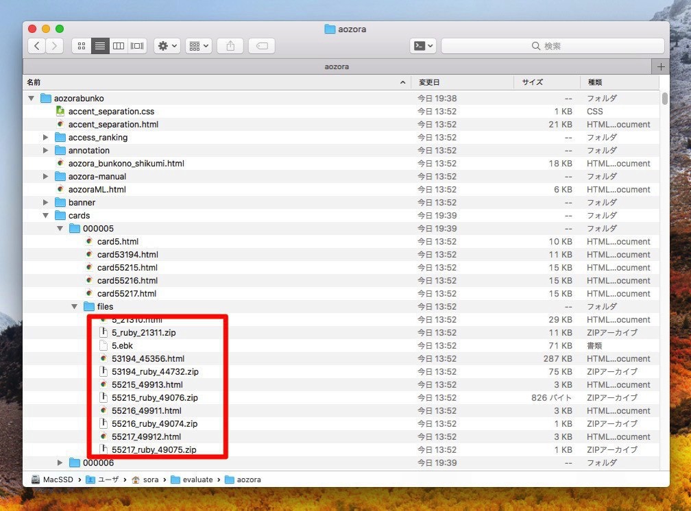 青空文庫データの一括保存方法