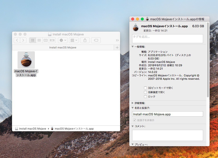 事前にMac App StoreからmacOS Mojaveをダウンロードしておきます。