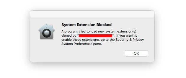 カーネルエクステンションを利用したソフトウェアをインストールすると許可を求めるアラートが表示されます。