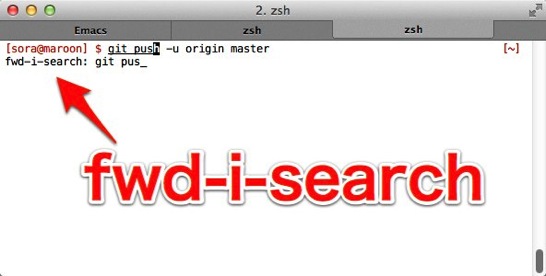 この設定を有効にして、C-sを押すと「fwd-i-search」が表示され前方インクリメンタル検索が有効になっていることがわかると思います。