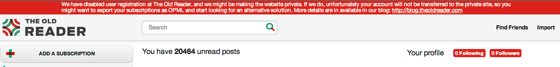 Googleリーダー代替サービスの中で「最もGoogleリーダーの使い勝手近い」RSSリーダーとして期待の高かった、「The Old Reader」が新規ユーザー登録を取りやめ、プライベートサイトに以降することをブログでアナウンスしました(公式ブログ)。問題の記事は、かなり長文なので要点をつかむのに苦労しますが、ポイントは以下の部分でしょうか。