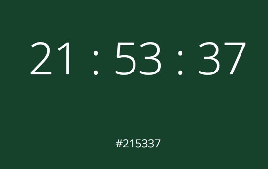 この時計のキモは、時刻の6桁の数字を#から始まる色の指定と見立てて、バックグラウンドの色を時間の経過とともに変化させていく、という点にあります。