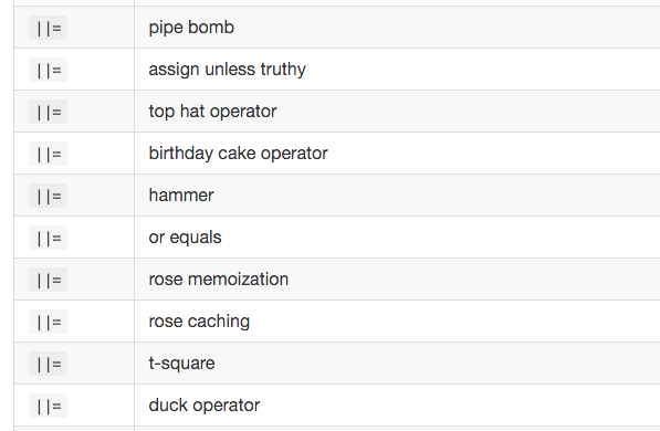 ▲「||=」のように何と呼ぶか意見が分かれている記号も存在します。