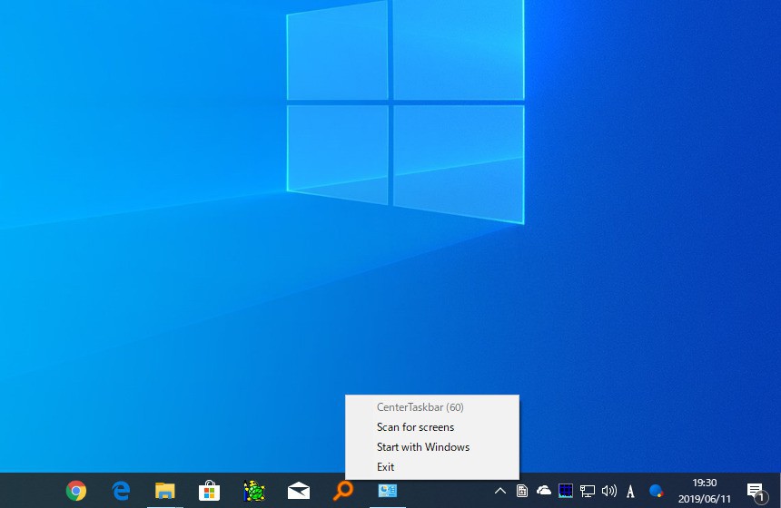 CenterTaskbarを実行するとWindowsのタスクバーに表示されているアイコンをセンタリングすることができます。Windowsの場合スタートメニューを多用するためセンタリングのメリットは少ないかもしれませんが、普段と異なる配置を試してみたい方におすすめのソフトです。