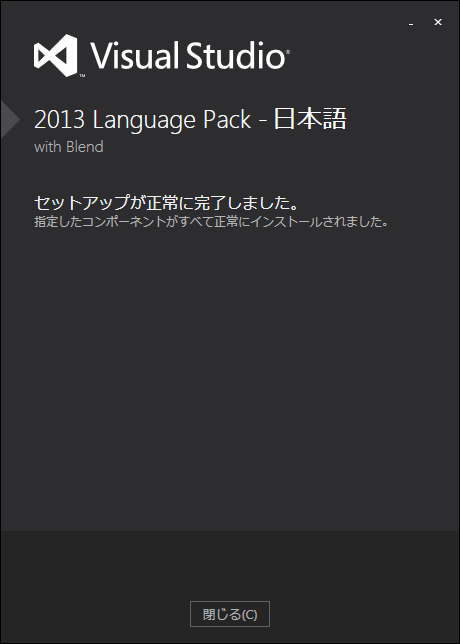 起動時に「Microsoft Visual Studioで、インストールされている言語リソースのバージョンの不一致が検出されました。このような状況は、異なるバージョンの製品(Beta、RC、RTM)が異なる言語に対してインストールされているインスタンスで発生する可能性があります。」というエラーが表示されました。