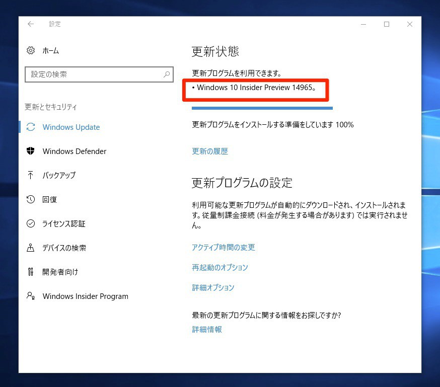 Windows Insider Programに参加し、更新設定を”Fast”に設定しているユーザーは、既存のWindows 10環境からWindows Updateを利用して最新ビルドに更新することができます(PC版の場合「設定 > 更新とセキュリティ > Windows Update」より)。